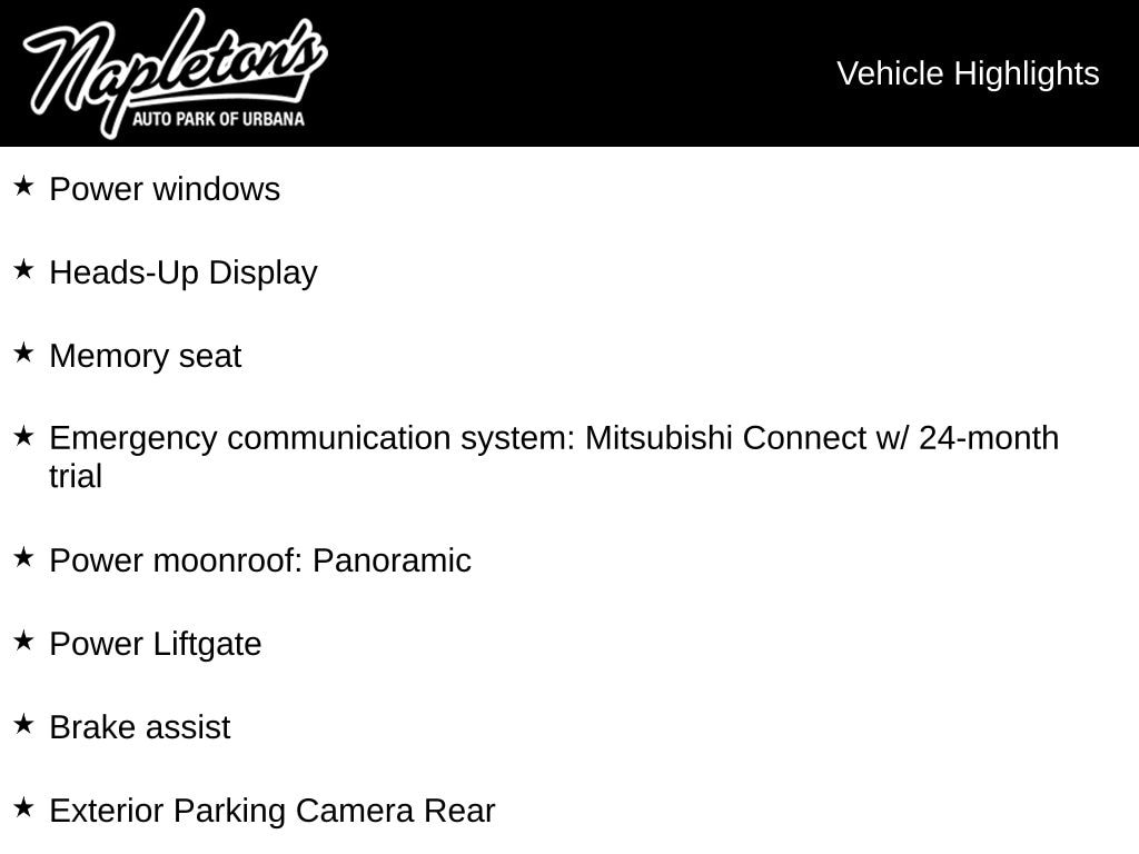 - Emergency communication system: Mitsubishi Connect w/ 24-month trial