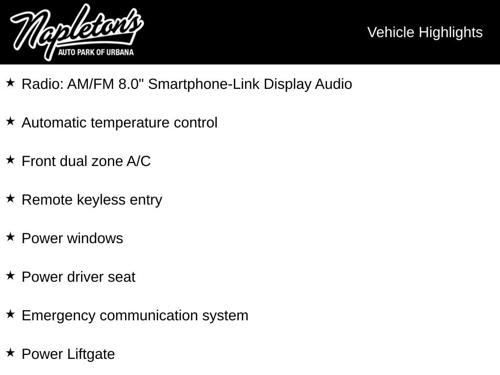 - Radio: AM/FM 8.0" Smartphone-Link Display Audio