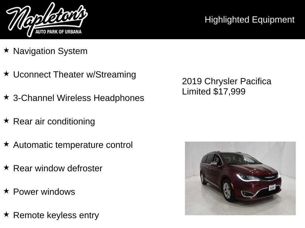 Experience the ultimate in family-friendly transportation with the 2019 Chrysler Pacifica Limited w/ Uconnect Theater w/Streaming. Visit our showroom today and let us demonstrate how this exceptional vehicle can enhance your daily driving and make your family's journeys more enjoyable than ever before.