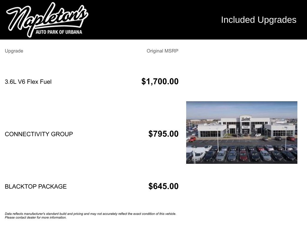 - Blacktop Package: Adds Touring Suspension, 17" Fully Painted Black Wheels, Gloss Black Exterior Accents, and More