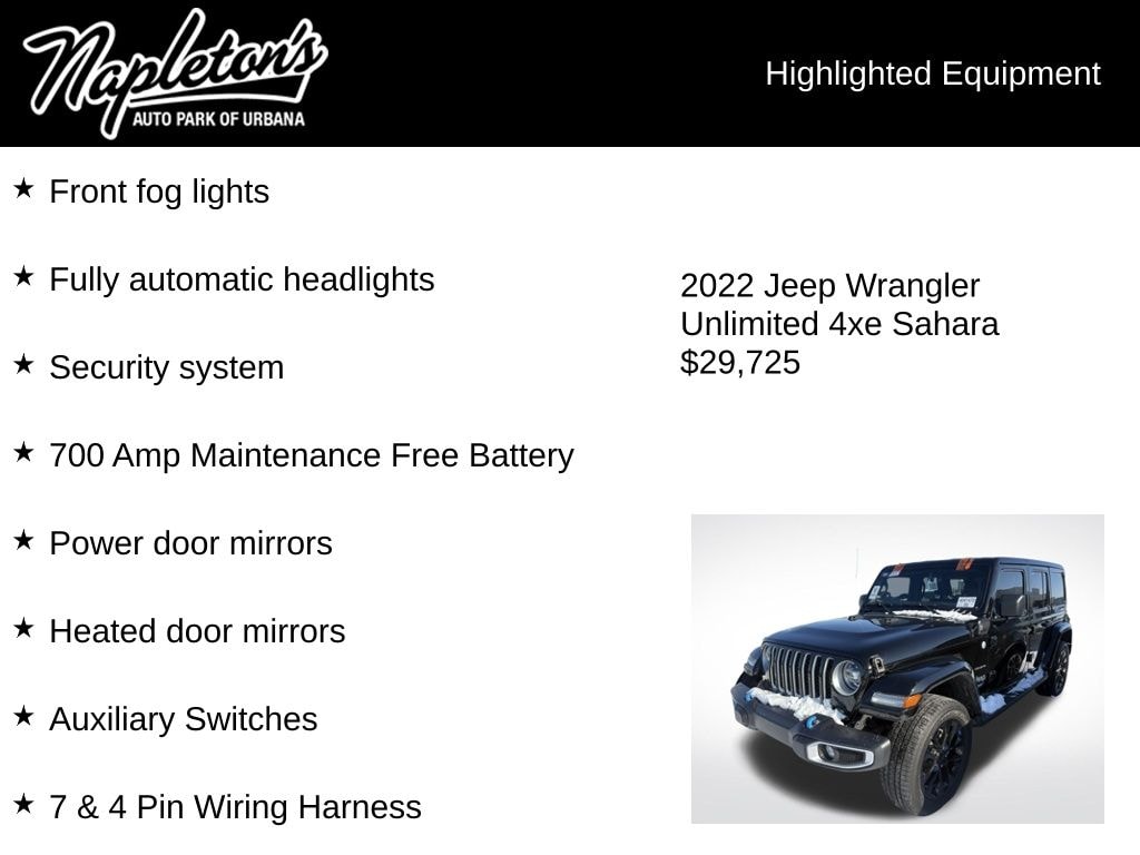 Don't miss your opportunity to own this exceptional 2022 Jeep Wrangler Unlimited Sahara 4xe. Experience the perfect blend of off-road capability, efficiency, and advanced technology. Schedule a test drive today and discover the ultimate adventure-ready SUV.