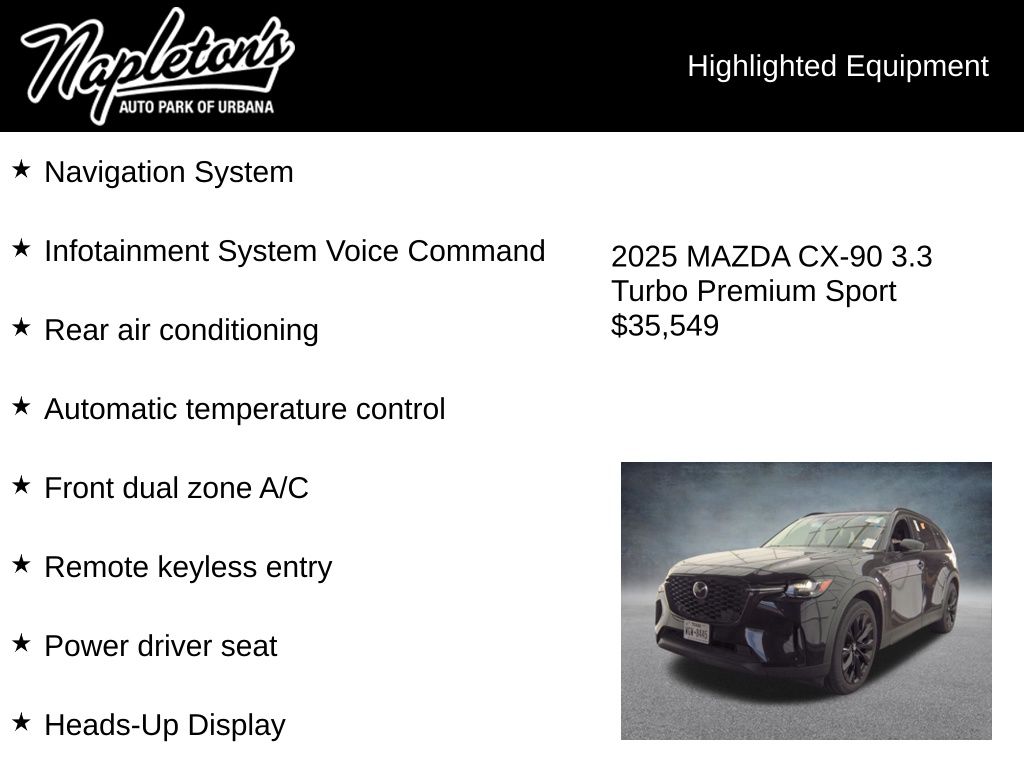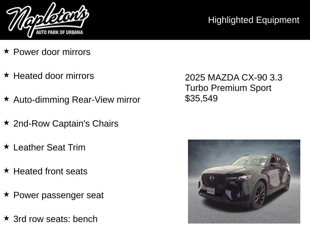 Experience the exceptional 2025 Mazda CX-90 3.3 Turbo Premium w/ Second Row Caption's Chairs for yourself. Visit our showroom today and let us demonstrate why this SUV is the perfect blend of performance, luxury, and practicality. We're confident you'll be captivated by its unparalleled capabilities and refined elegance.