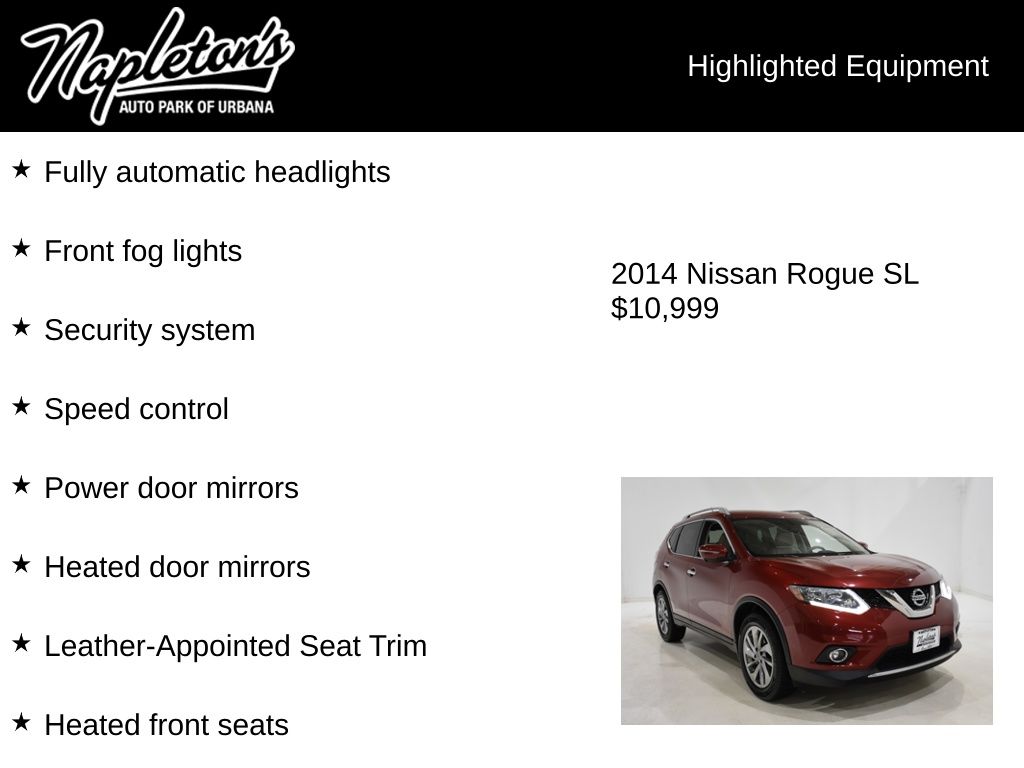 Discover the perfect blend of style, comfort, and performance in this 2014 Nissan Rogue SL. This stunning SUV is equipped with a 2.5L I4 DOHC 16V engine, delivering an impressive 26 city/33 highway MPG, ensuring exceptional fuel efficiency for your daily commute or weekend adventures.