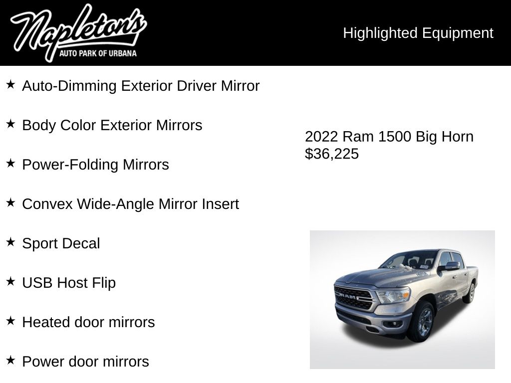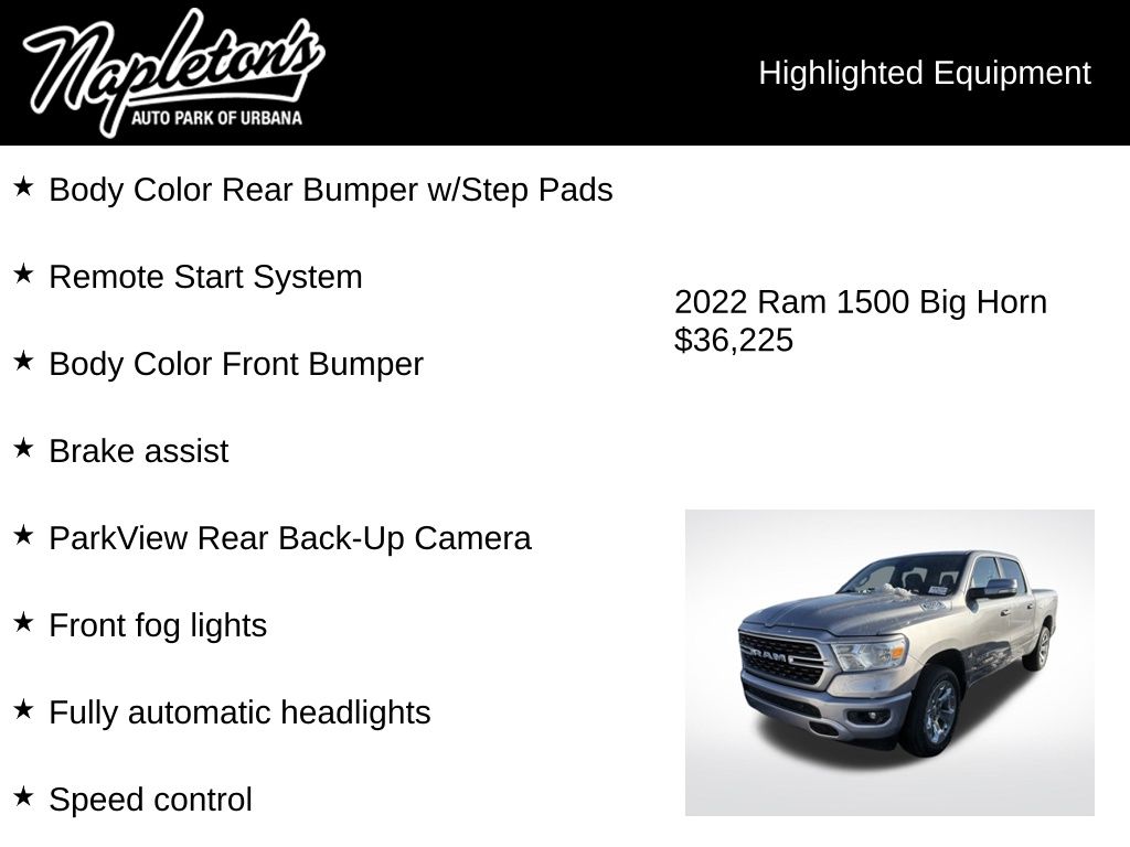 Discover the exceptional value and uncompromising quality of the 2022 Ram 1500 Big Horn/Lone Star. Schedule a test drive today and experience the difference for yourself. Our knowledgeable team is here to answer any questions you may have and help you find the perfect truck to fit your lifestyle.