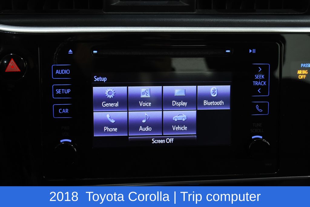 Stepping inside, you'll appreciate the thoughtful design and premium amenities that set this Corolla apart. The 6-speaker audio system with a 6.1" touchscreen display, AM/FM radio, and CD player provides an exceptional listening experience. Stay connected with the radio data system and enjoy the convenience of steering wheel-mounted audio controls.